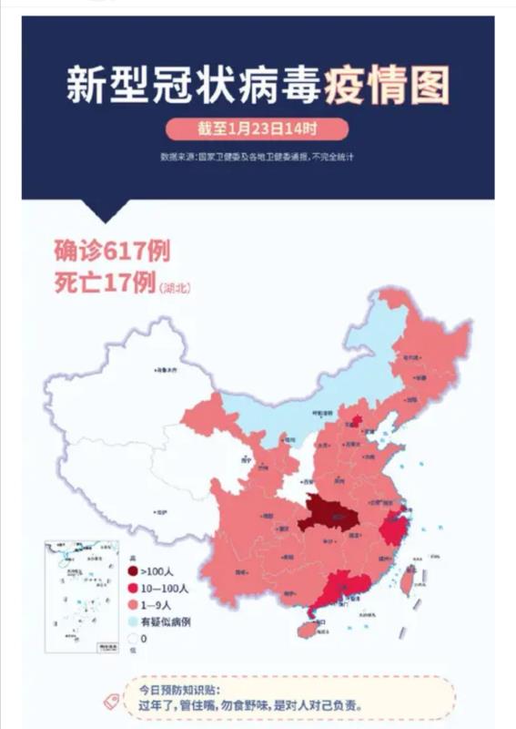 截止1月23日14时,据国家卫健委及各地卫健委通报数据的不完全统计,全国累计报告新型冠状病毒感染的肺炎确诊病例已超600例,疫情已播散到全国乃至世界各地。(源自环球网)